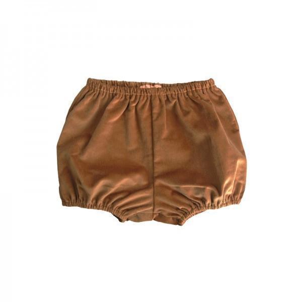 Ce bloomer en velours brun-doré est la pièce idéale pour créer un joli look vintage à bébé. Ses fronces lui donnent du volume pour un effet bouffant à souhait. Avec des collants blanc-cassé, bébé sera à croquer.