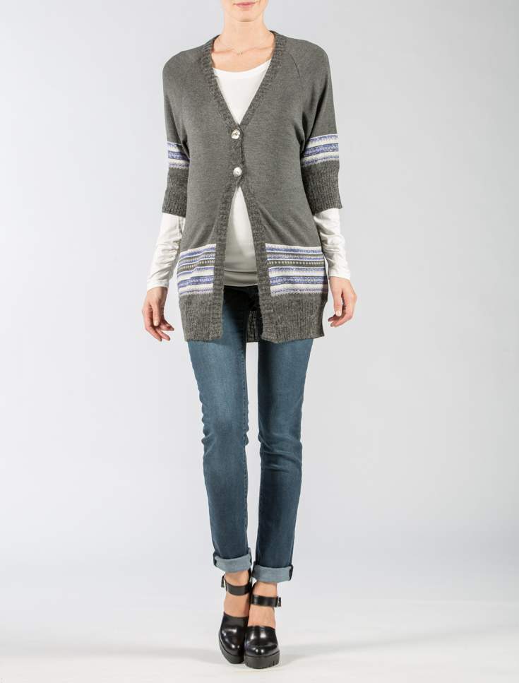 Ce joli cardigan de grossesse à manches 3/4 sera votre allié confort pour vous tenir au chaud lors des matins frisquets et des soirées fraîches. Portez-le accompagné d'un jean pour vos looks les plus décontractés.