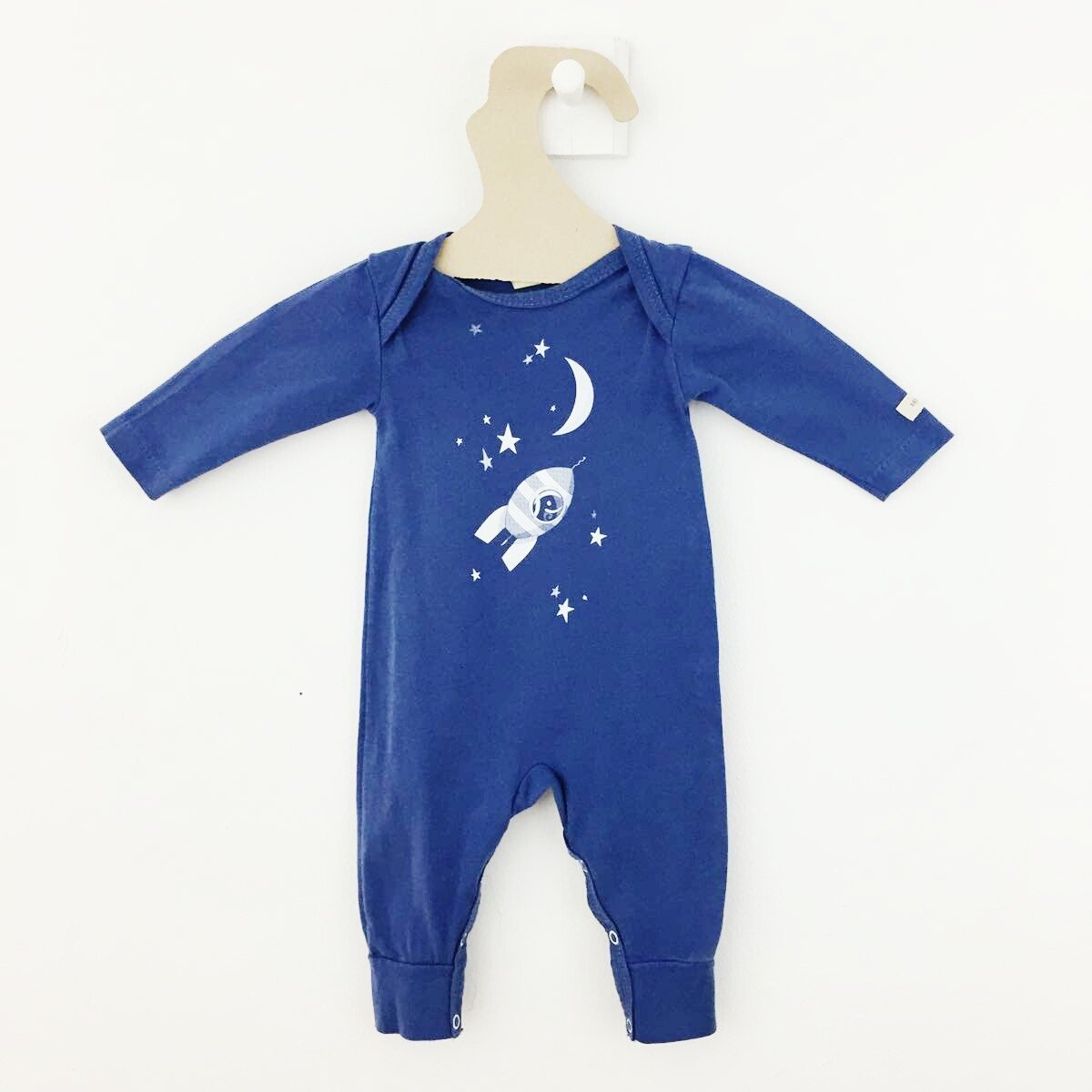 Cette combinaison bébé bleue, avec sa sérigraphie "Fusée et étoiles" va vous envoyer directement dans l'espace ! Confortable et super pratique, elle possède une ouverture facile à l'entrejambes. En un rien de temps bébé est changé et tout propre ! La pièce idéale pour chiller à la maison.