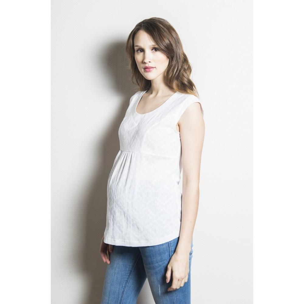 Une tunique délicate blanche qui épouse parfaitement les formes des futures mamans.