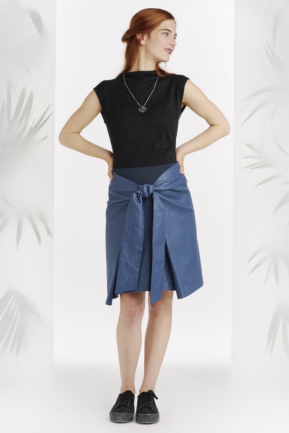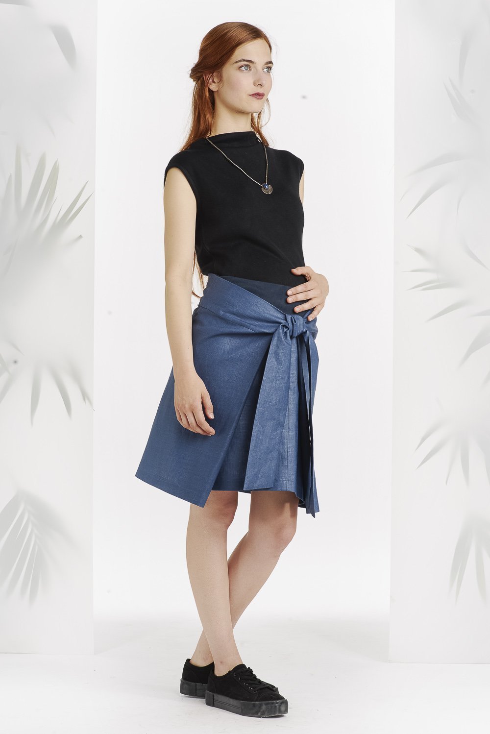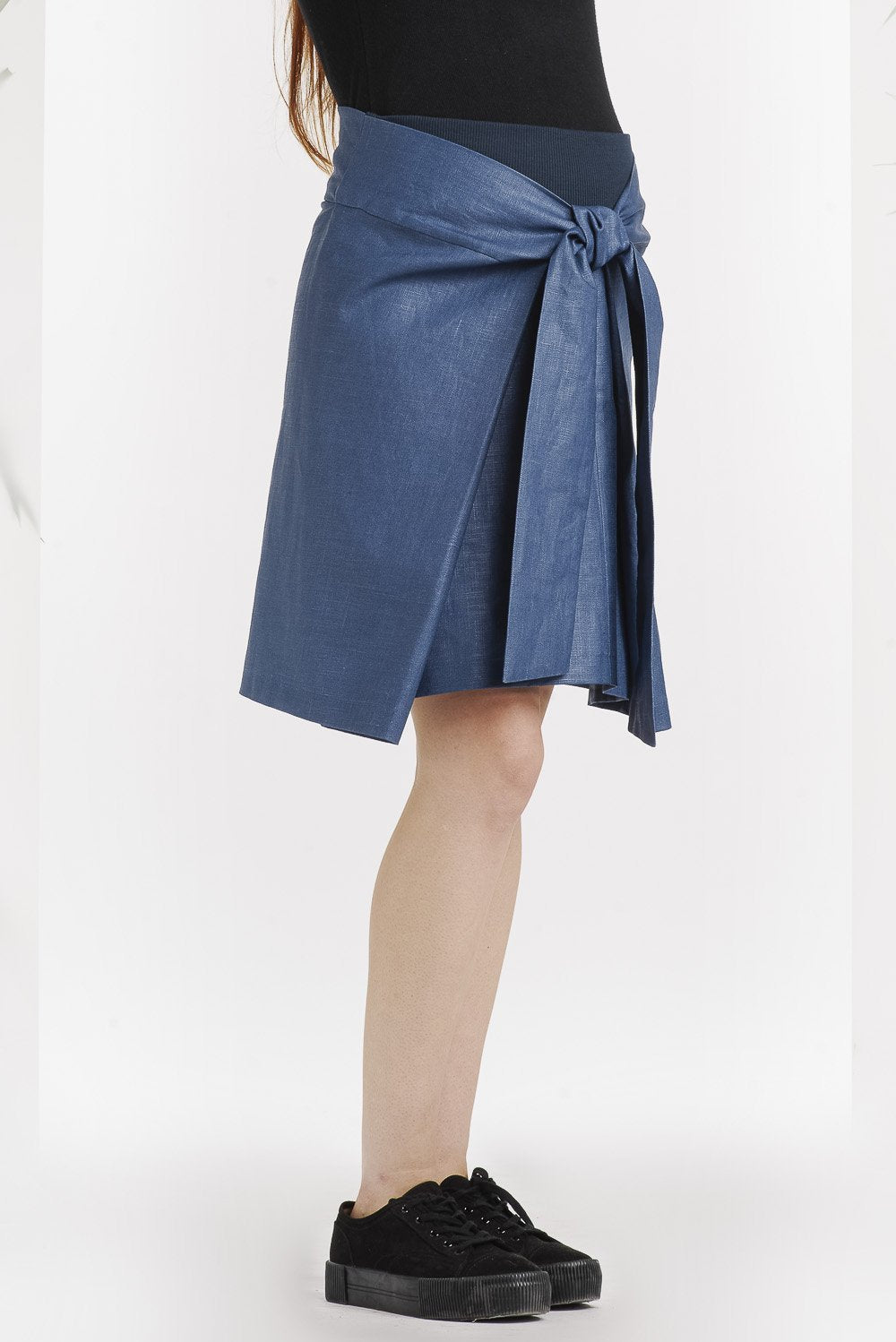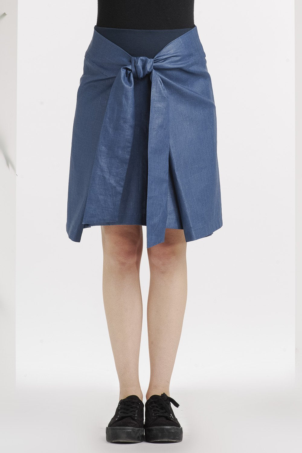 Superbe jupe en tissu en lin enduit bleu! Parfait pour toutes les saisons.