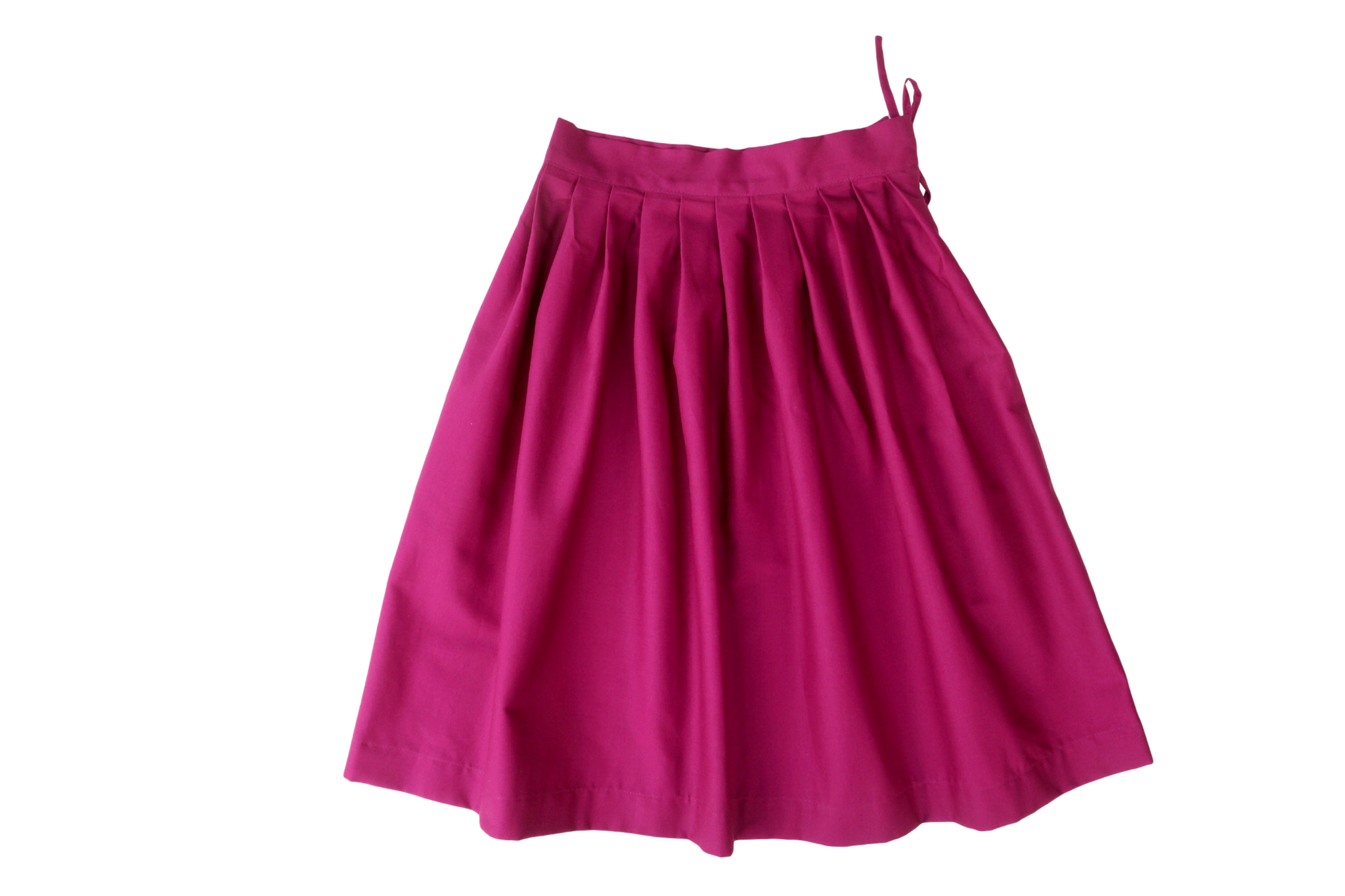 Jupe plissée en dessous du genou. Ceinture et fermeture éclair sur le côté + lien à nouer.